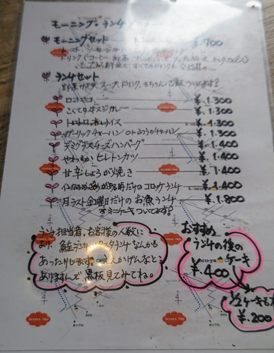 Welcome to kinco-ya, a charming café nestled in the serene surroundings of Kyotanabe, Kyoto. This delightful spot offers a menu that captivates with its comforting flavors and warm hospitality. Start your day with a hearty breakfast, featuring choices like sausages or ham and eggs, paired with a refreshing salad bursting with fresh vegetables.